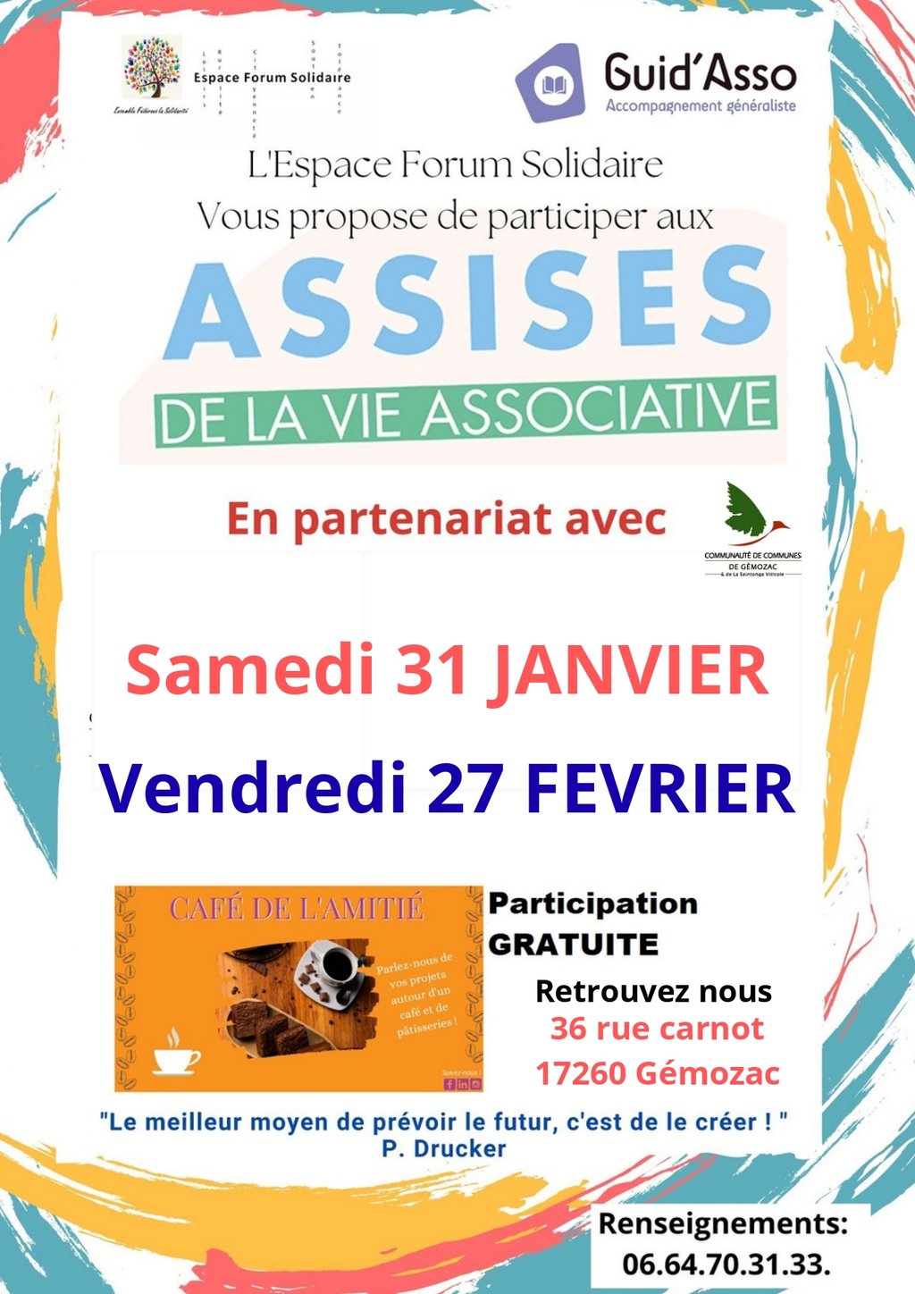 L’Espace Forum Solidaire, structure labellisée Guid’Asso, vous invite à participer aux Assises de la Vie Associative, deux rendez-vous ouverts à toutes les associations locales, quel que soit leur domaine d’activité.