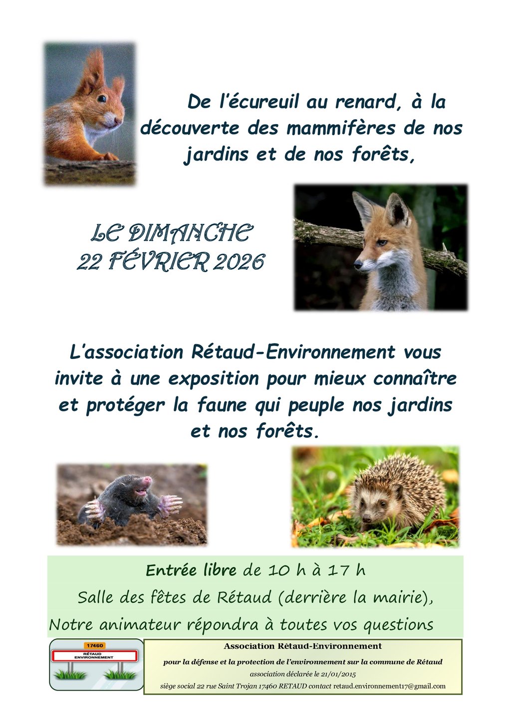 EXPOSITION "Découverte des mammifères de nos jardins et nos forêts"